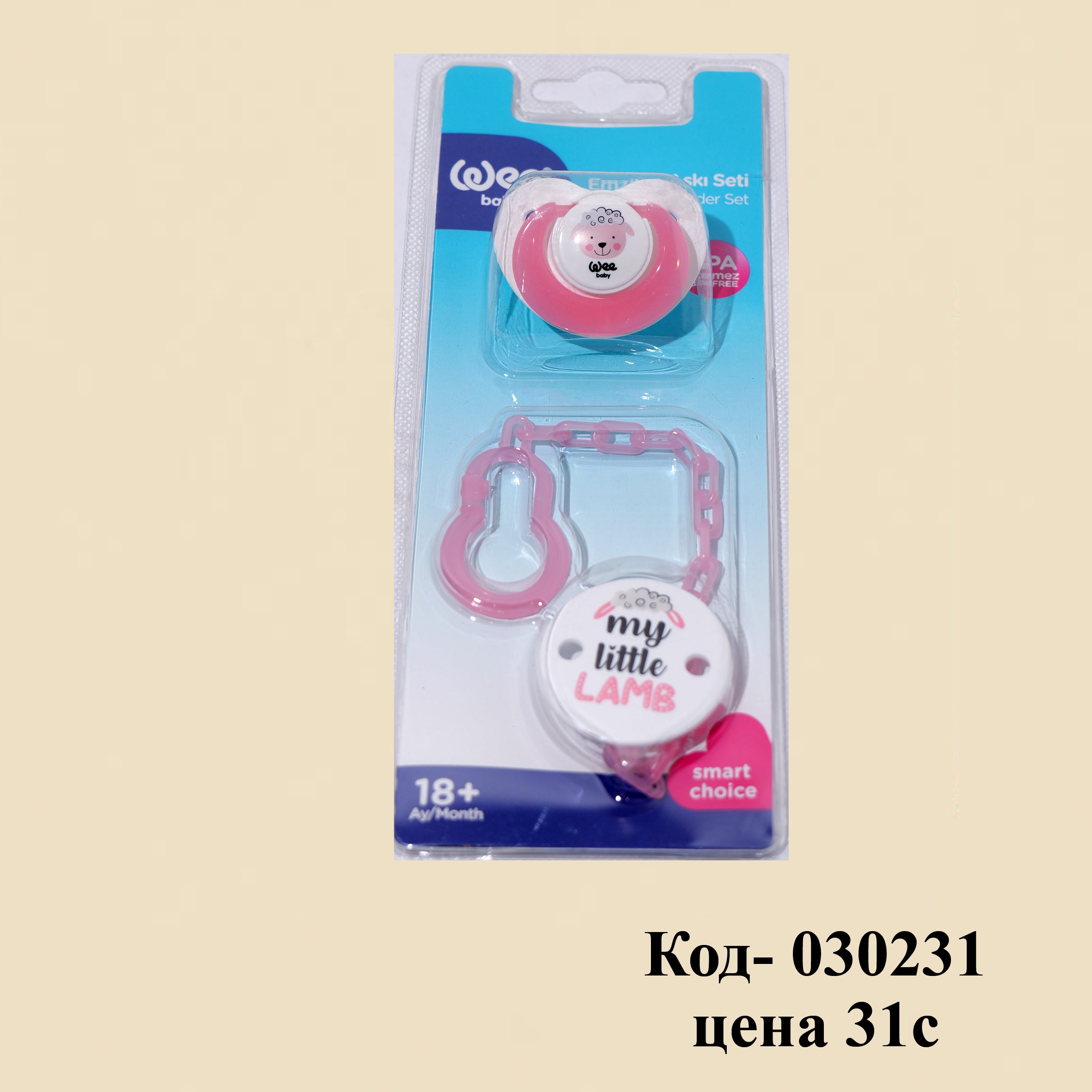 Розовый 373 Соска-пустышка и ремешок в комплекте