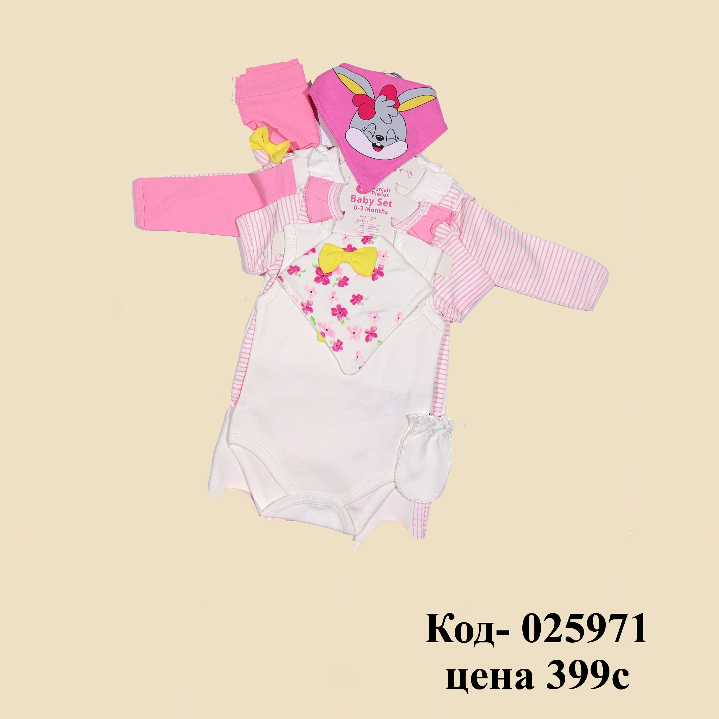 Повседневный принтованный комплект из чистого хлопка для девочек розового и белого цвета