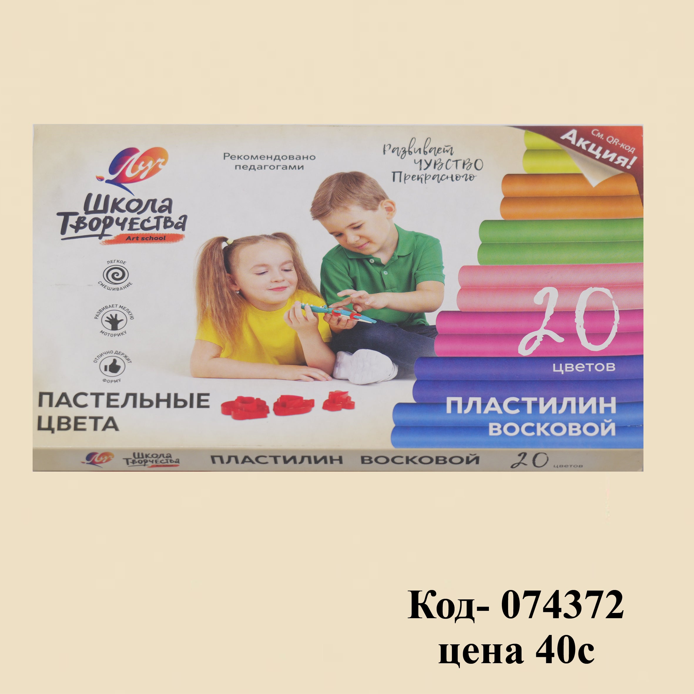 Пластилин восковой "Школа творчества" 20 цветов, 389742 - купить оптом от 172,16 рублей